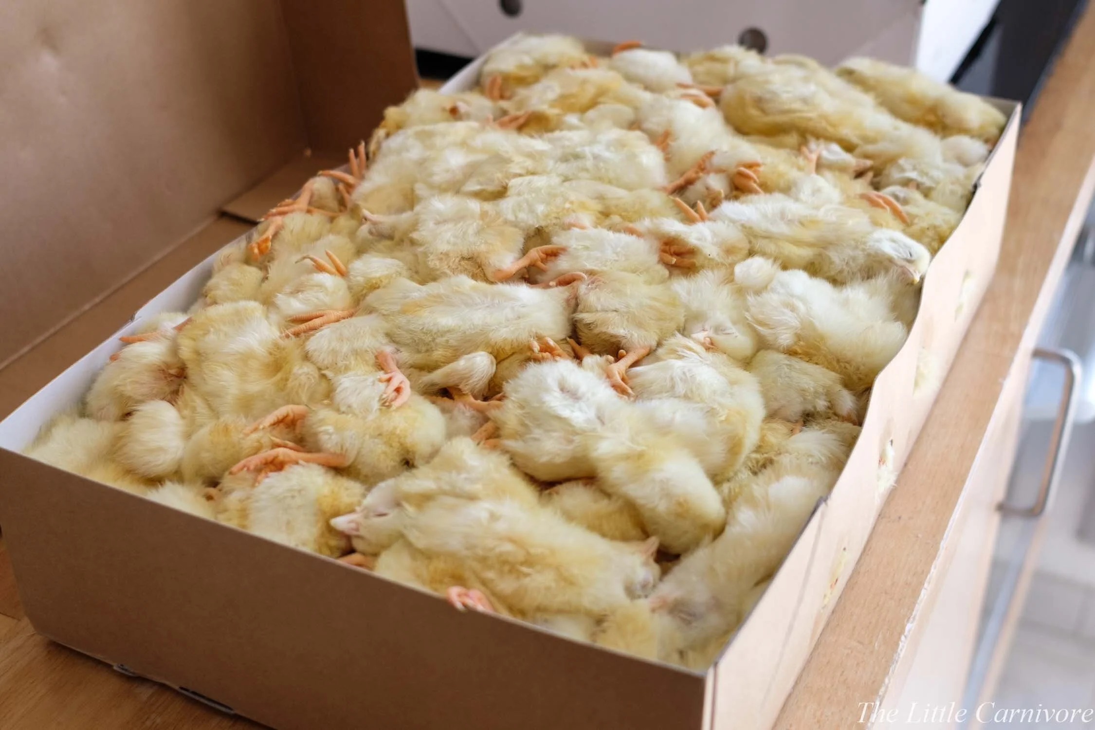 Cependant, après quelques temps, elles ont arrêté de jouer avec les poussins et maintenant, elles les mangent directement, probablement parce qu’elles s’y sont habituées ? Néanmoins, cela reste une de leur nourriture favorite.